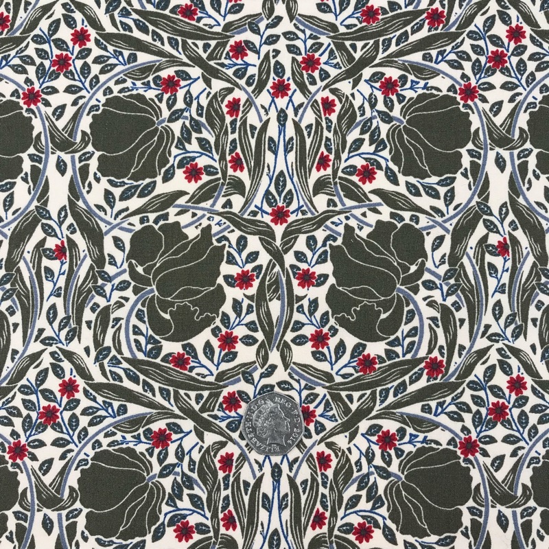 A medium weight fabric suitable for blouses, dresses, skirts and pyjama bottoms.A medium sized flowe..